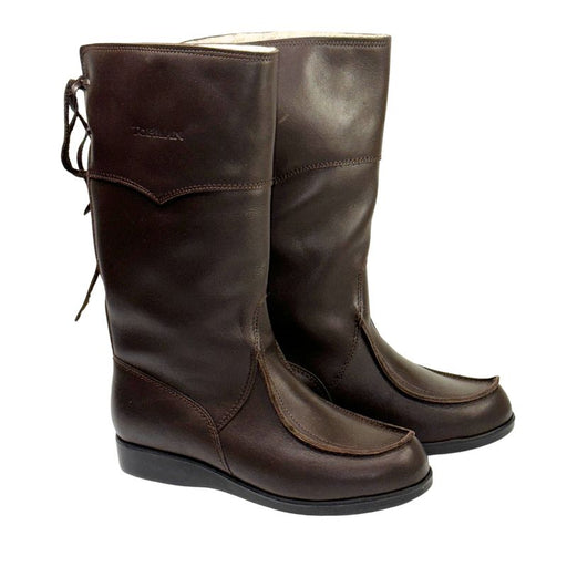Nilkkurit on valmistettu nahasta, villasekoitevuorit ja ulkopohja kitkapohja. Varsi neulosta, jonka voi pitää taitettuna tai nostaa pystyyn "sukkav...