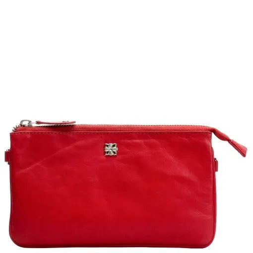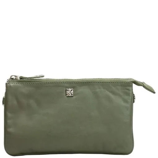 Näppärä nahkainen pikkulaukku pitkällä irrotettavalla olkahihnalla. Vetoketjullinen päätasku jossa kaksi lokeroa ja kaksi RFID-suojattua korttipaik...