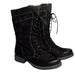 Saappaat on valmistettu tekstiilistä, vuorit on tekstiiliä (keinokarvaa) ja ulkopohja kumiseosta. Lestilaajuus G+ mikä on peruslestiä hiukan tilavampi. Kannan korkeus on n. 3 cm ja pohjan paksuus päkiän alla on n. 1,5 cm. Varren korkeus takasaumasta on n. 24 cm. Varren yläreuna on n. 38 cm. Varren suussa ei ole venykeitä. Nauhoilla voi hiukan kiristää, mutta nauhoituksen alla oleva iltti ei ole irtonainen, eli nauhoilla ei voi vartta levittää juurikaan.