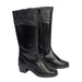 Saappaat on valmistettu nahasta, teddyvuorit ja ulkopohja kumia. Lestilaajuus H, mikä sopii myös hiukan enemmän tilaa vaativiin jalkoihin. Kannan korkeus on n. 3,5 cm ja pohjan paksuus päkiän alla on n. 1 cm.  Varren korkeus on n. 30-34 cm koosta riippuen. Varsilaajuus S. Koossa 36 varren ympärysmitta yläreunasta on n. 34 cm ja koossa 40 se on n. 37 cm. Sisäsyrjällä pieni venyke. Mikäli sinulla on kovin muodokkaat pohkeet, ei tämä sovi sinulle.